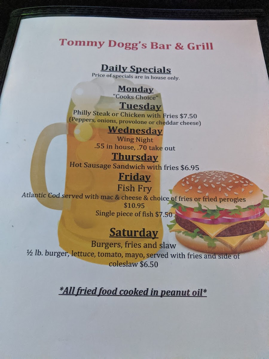 Located at 631 Vienna Ave, Niles, OH, Tommy Dogg's is a haven for food lovers with its enticing menu that balances classic flavors with a lively atmosphere. Each day brings delicious specials, perfect for any palate.